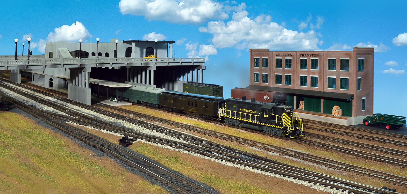 The Cherokee Sub of the Frisco is set in Tulsa in 1950. The 3 Class I railroads at that time were the Frisco, Santa Fe and the MKT. The railroad is within yard limits and includes the following 7 jobs. The yardmaster and helper will be running a freight which drops cars at Frisco industrial zone 3 and the Meteor which drops a sleeper at the Union Passenger Station, an extra livestock freight, an interchange with the Sand Springs RY and will build from the coach yard the consist of the Black Gold which ran Tulsa to Dallas/ Ft Worth. They assist locals and interchange with the MKT and Santa Fe. As time permits, they classify received cars.