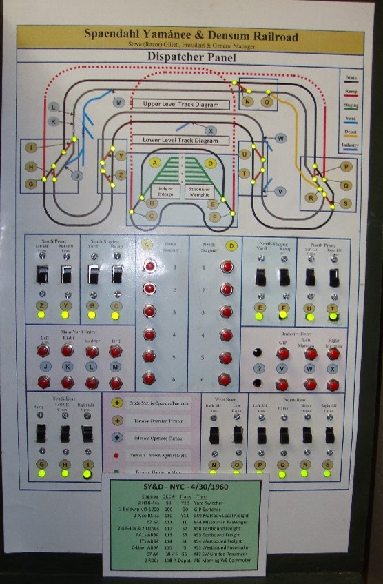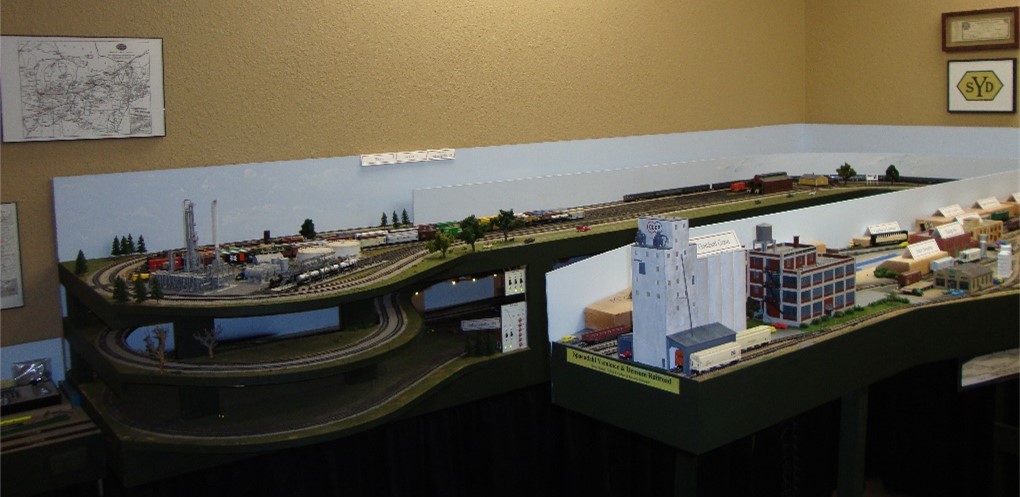 The SY&D Railroad models Mattoon, Illinois with a yard southwest of town. Trains running clockwise (CW) are moving east from St. Louis through Mattoon and on to Indianapolis.