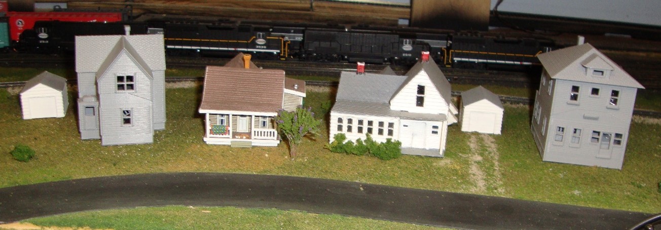 About the Railroad: Construction on the SY&D began in the summer of 2015 and became operational in the summer of 2017. It is a three-level, E-shaped layout. The lower level (at 40" elevation) contains a 6-track, double ended staging yard. The yard tracks are between 16.5' and 18' long, each able to hold a 50+ foot long train and four engines. The main level (at 52� elevation) is "E" shaped, with a dog boned double track main around the outer three sides and a peninsula in the center. All track is in place and scenery is 80% complete. Temporary buildings (wood blocks) are used as space holders for permanent structures that are not yet built.
